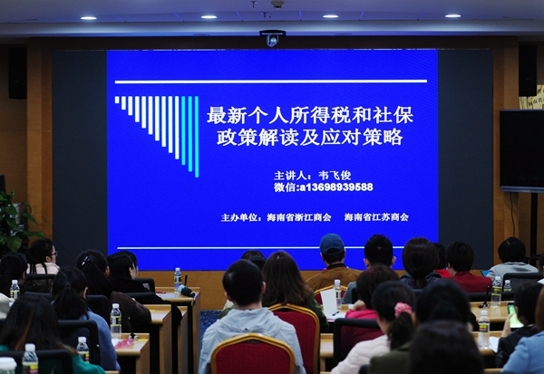 12月14日,海南省浙江商會(huì)及海南省江蘇商會(huì)聯(lián)合舉辦了“最新個(gè)人所得稅和社保政策解讀及應(yīng)對(duì)政策”講座,由商會(huì)稅務(wù)顧問(wèn)韋飛俊主講。